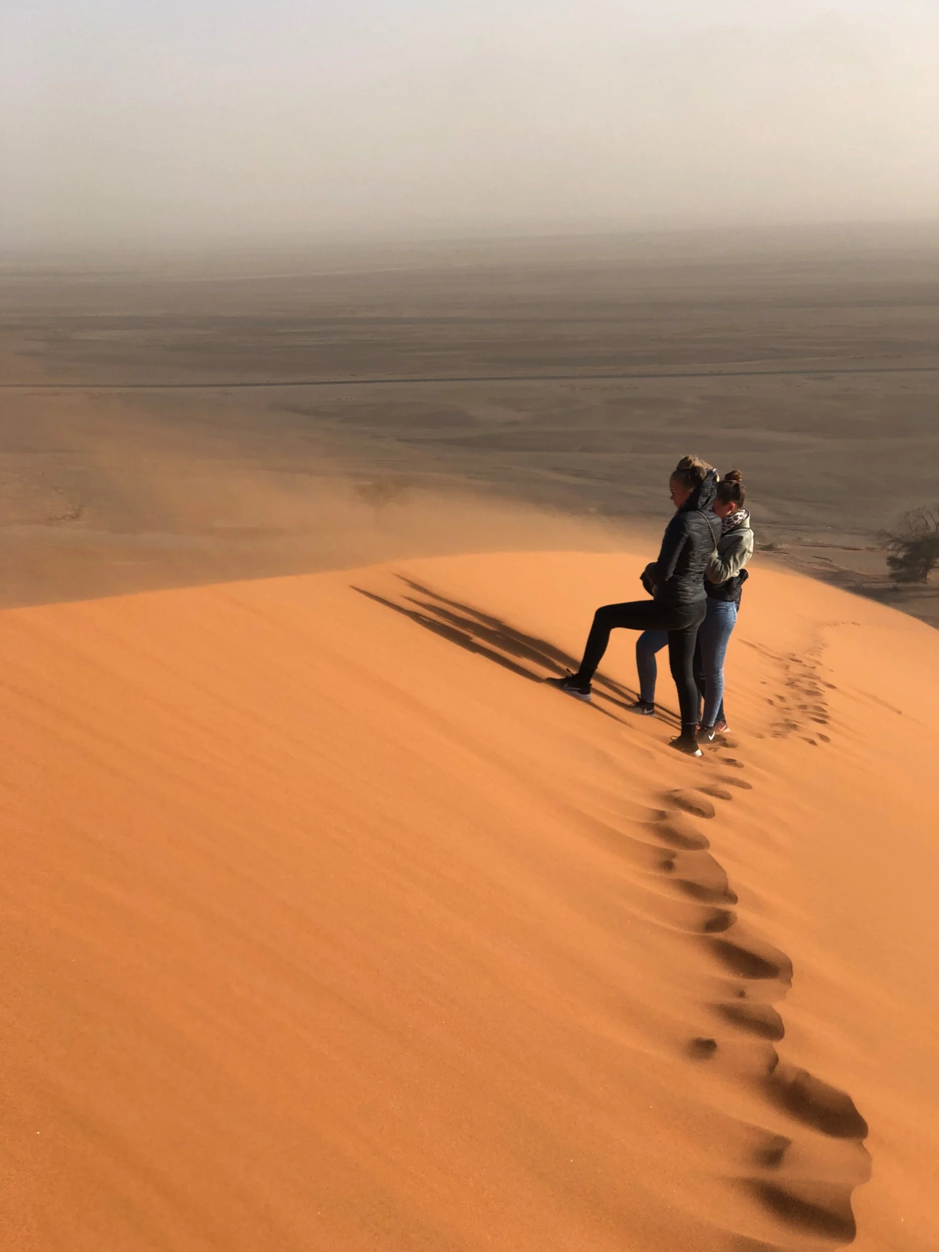 Not something that would stop us. So despite the fierce wind, we climbed the iconic Dune 45 💪🏼. The view up there had something truly special — dramatic, intense, and unforgettable. We stood there happy, windswept, and very much alive.