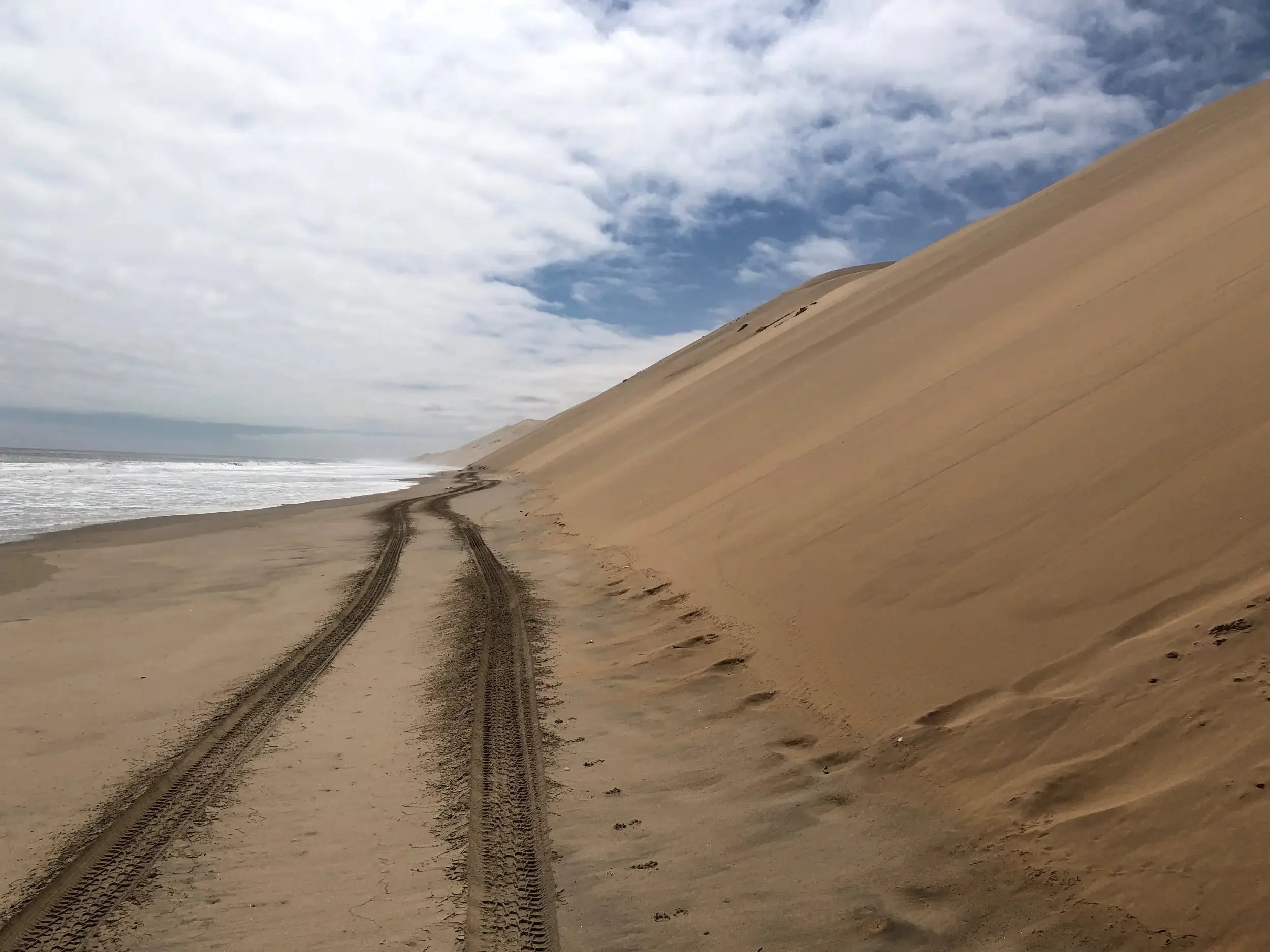 Ben guided us through the second part of the day — straight into the heart of the Namib’s dunes. And honestly… it’s hard to put into words. We started by driving along the coastline, close enough to feel the raw power of the Atlantic crashing beside us.