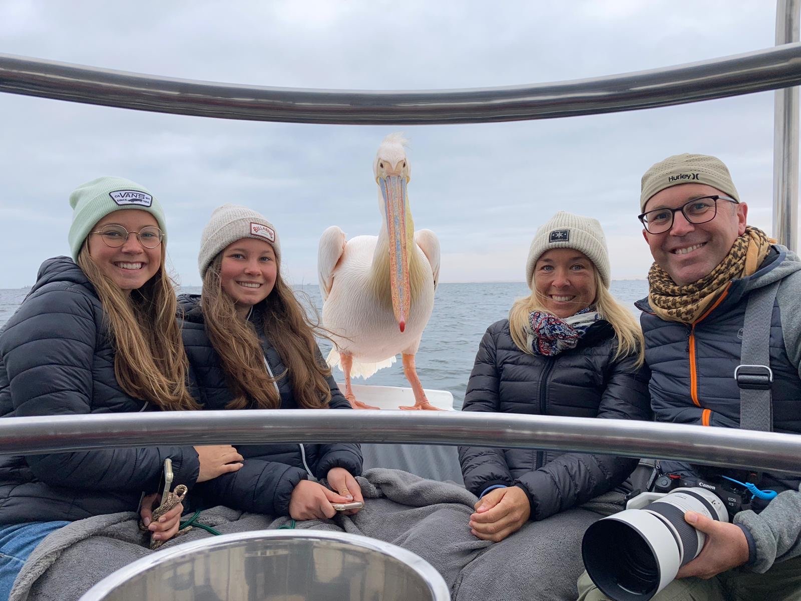 The morning started out on the ocean, heading offshore on a catamaran. We hadn’t even settled in when our first visitor arrived from the sky: a pelican decided our boat was the perfect place to hang out — probably because the fish 🐟 was excellent 😂.