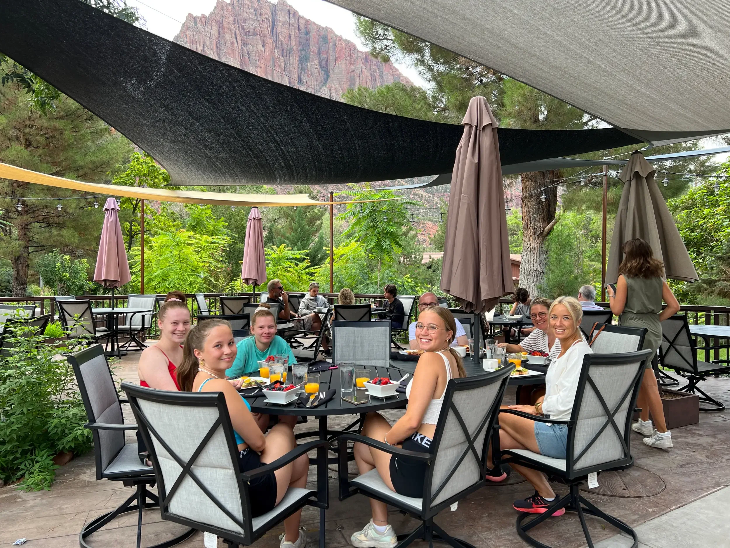 Arriving in Springdale came with a small reality check. Our plan had been to hike The Narrows, walking directly through the river inside the canyon. Unfortunately, current weather conditions made that impossible — and the forecast for tomorrow isn’t looking much better either, with rain expected from noon onward 🥺🥺.